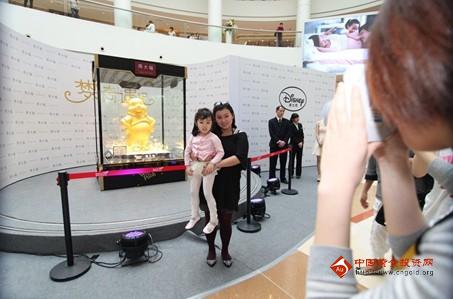 4月14日广州,一直致力成为全球最值得信赖亚洲珠宝品牌的周大福,在广州万菱汇商场展出了目前全球最大的小熊维尼足金摆件,周大福代表李国强先生以及迪士尼代表林家文先生等嘉宾为活动揭幕。